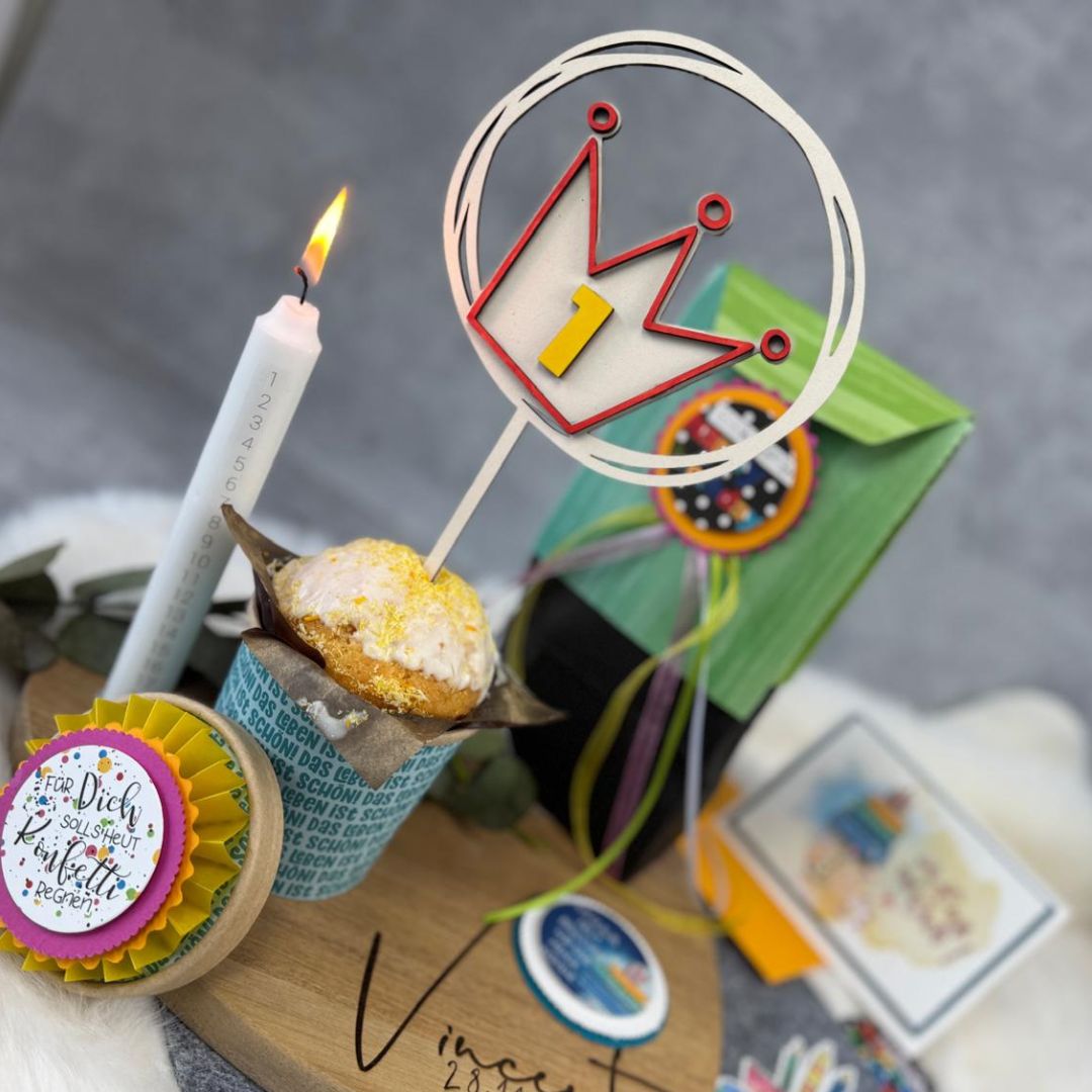 Mit ein wenig Farbe kannst Du die Krone auch noch farblich passend bemalen, damit der Kuchen auch zur Tischdeko passt!