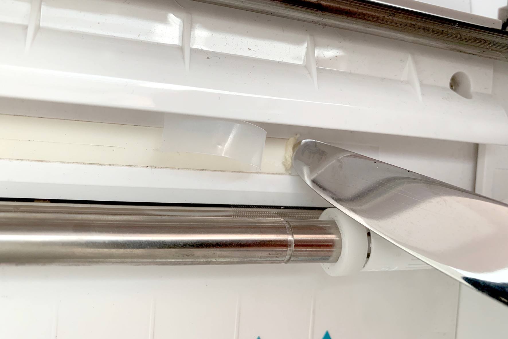 Wenn die kaputte Schneideleiste vollständig entfernt ist, benötigst Du nun eine Neue. Wir empfehlen Dir, die alte Leiste erst zu entfernen, wenn Du eine Neue zur Hand hast, damit sich in der Zwischenzeit kein Staub festsetzt.